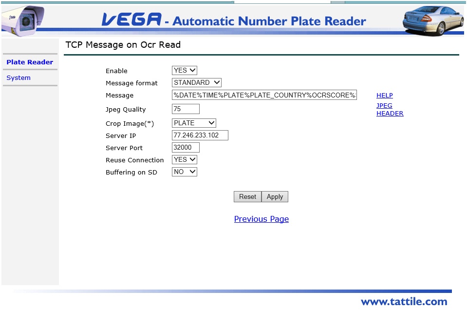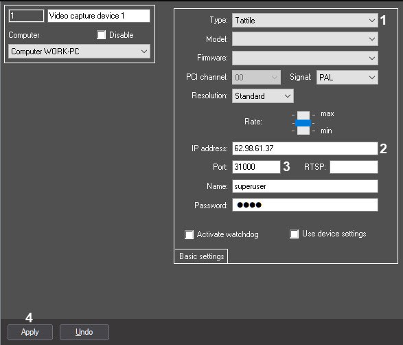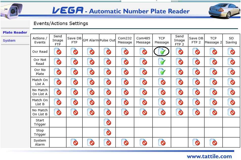 Configuring the VEGA Access and VEGA III cameras by the Tattile manufacturer is performed the following way: