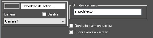 - Create the Embedded detection object on the base of Camera object. Enter the anpr-detector value in the ID in device terms field.