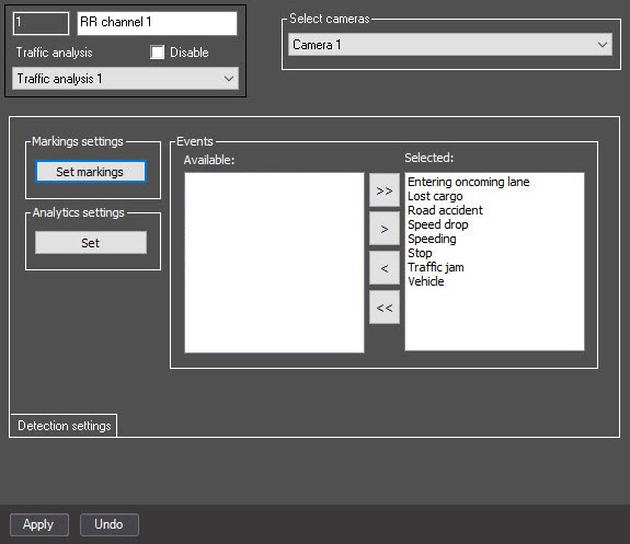 Configuring video analytics to work with the RR channel of the Traffic analysis module is complete.