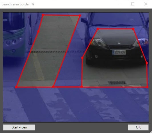 By default, the LPR channel scans the whole video image received from the camera for the LP number. To decrease the load on the Server, specify a smaller area where the LP must be searched for.