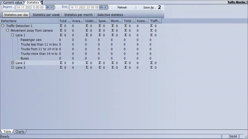 The Statistics tab (1) allows saving the traffic statistics into a file.