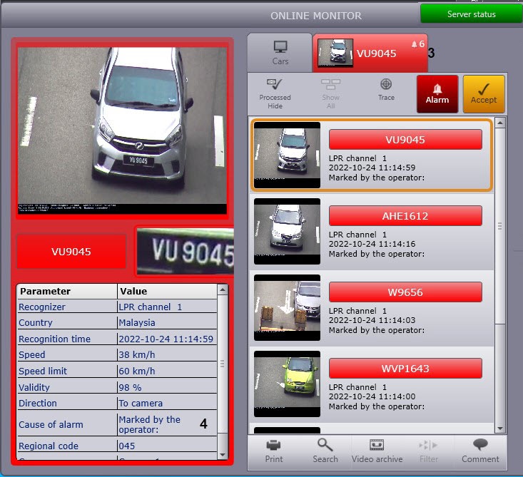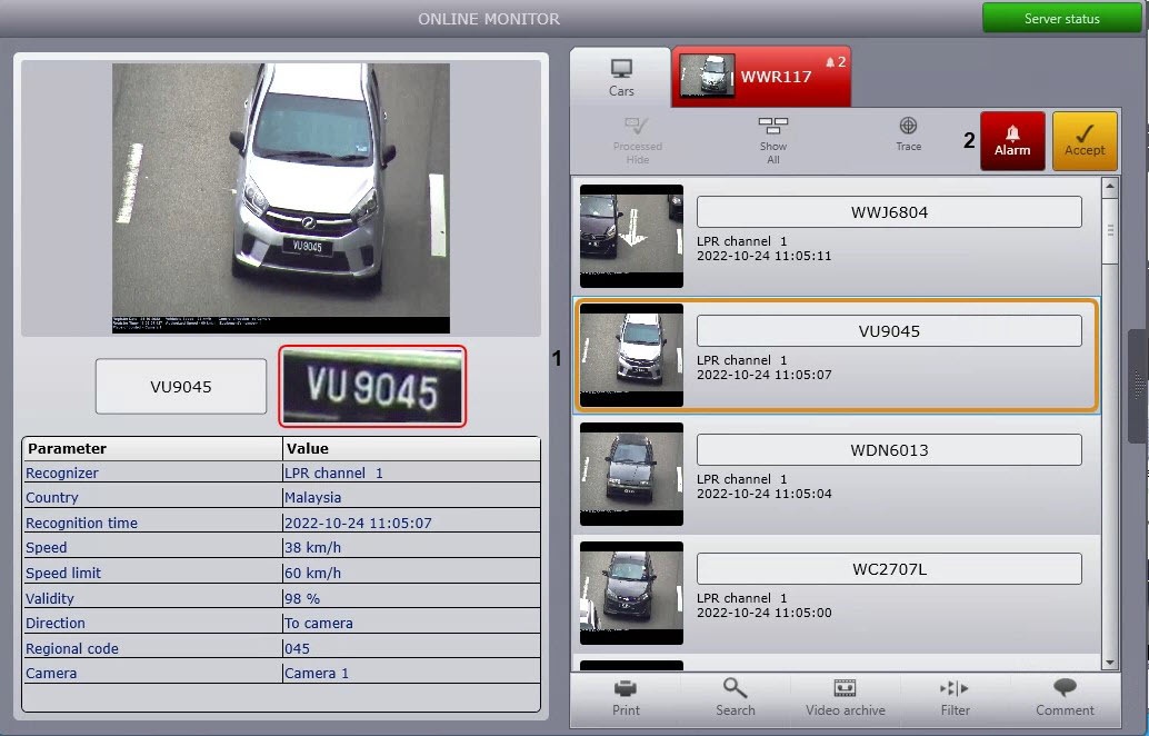 1. Left-click the required event in the identified vehicles protocol (1).