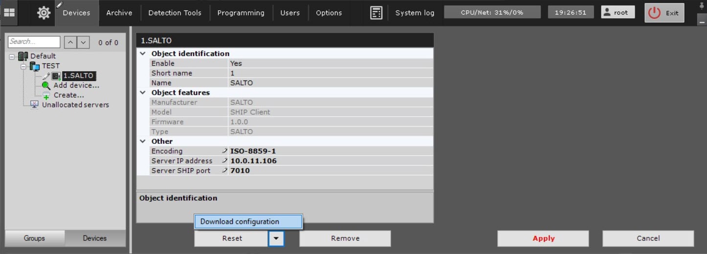 Configuring the SALTO integration module is complete. As a result, a hardware tree will be built: