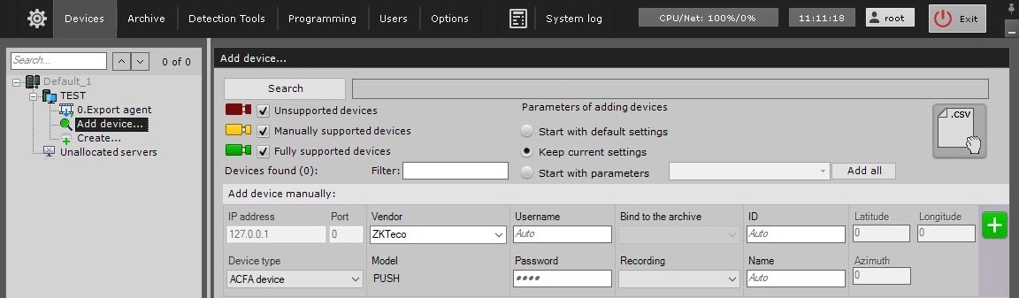 - From the Vendor drop-down list, select ZKTeko. In the Model field, the PUSH model will be selected by default.