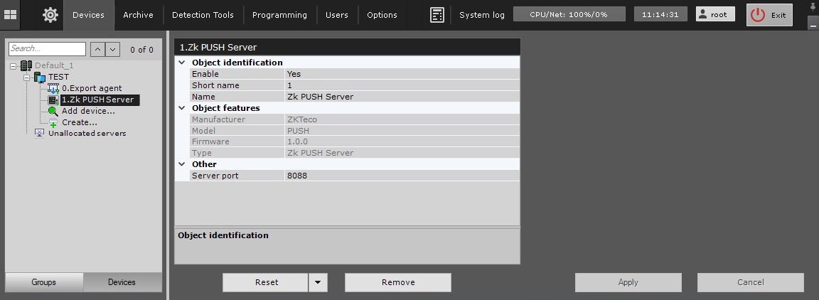 As a result, the Zk PUSH Server integration module will be displayed in the hardware tree.