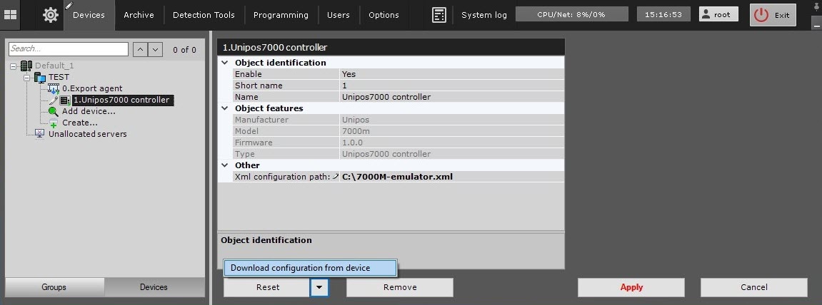 Configuration of the object of the Unipos7000 controller integration module is complete. As a result, a hardware tree will be built: