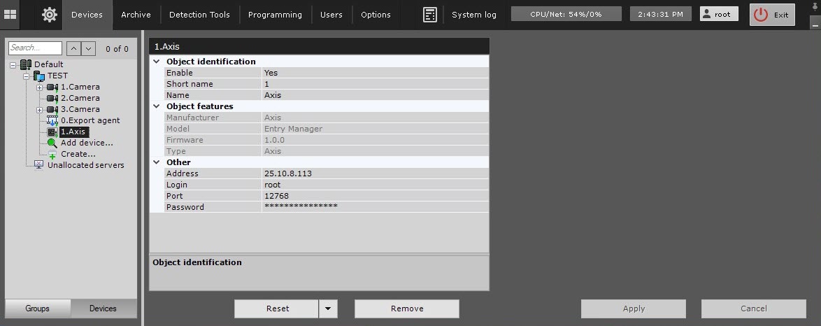 As a result, the Axis integration module will be displayed in the hardware tree.