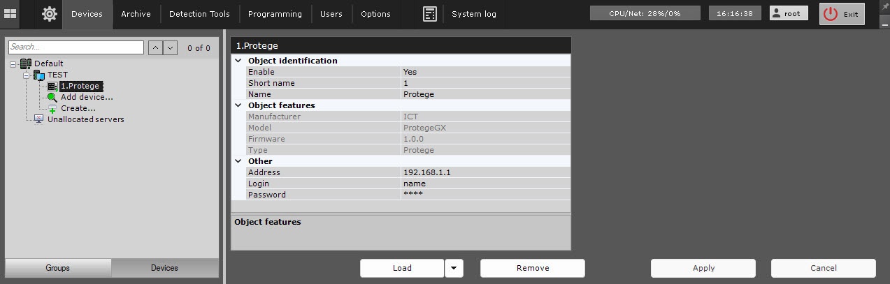 As a result, the Protege integration module is displayed in the device tree.