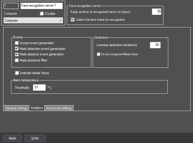 Set the Mask absence event generation checkbox to enable the event generation in case the mask is absent on the face.