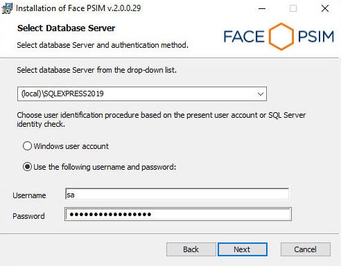 The SQL server from Face PSIM distribution package (or from a third-party distribution package) and Face PSIM are installed on the same computer