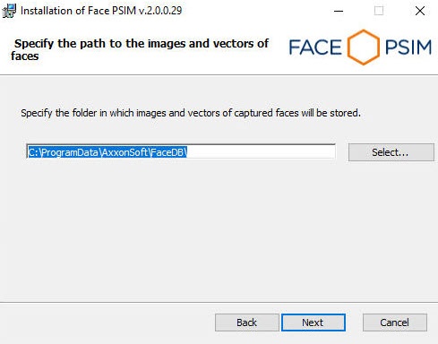 12. Specify the folder in which images and vectors of the captured and reference faces will be stored and click the Next button.