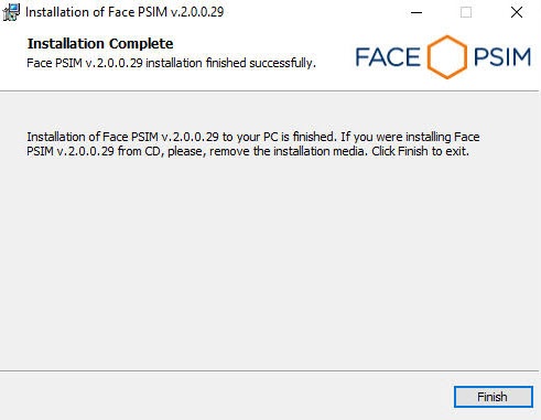 14. After Face PSIM components have been successfully copied, a message about the completion of the installation process will be displayed. Then click the Finish button.