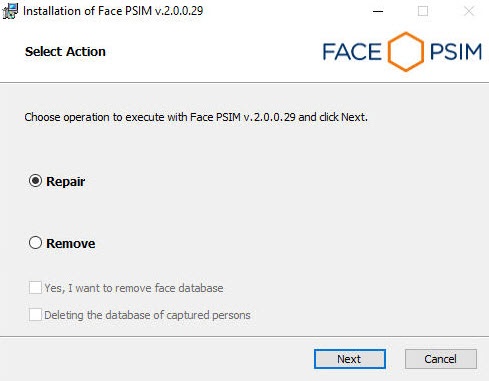 The repair mode is used if Face PSIM software components need to be re-installed.