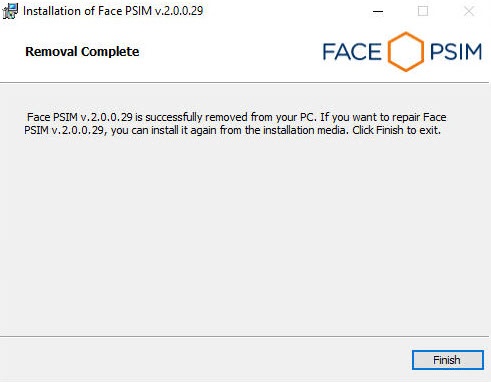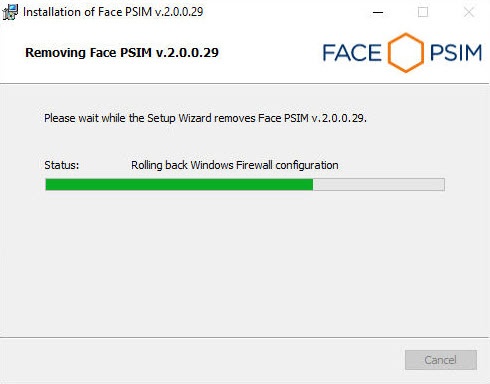 As a result, the process of removing the installed components of Face PSIM from the hard drive of the computer will begin.