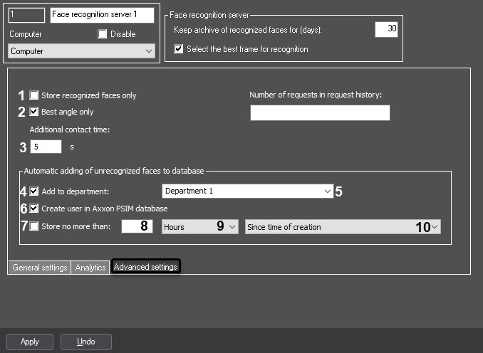 4Add to departmentSet the checkboxEnables automatic adding of unrecognized faces to databaseBoolean typeNo