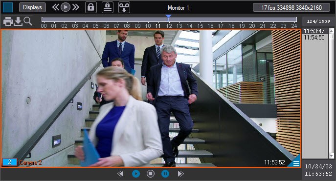 As a result, the video archive is displayed in the video archive playback monitor (see Configuring the permissions and additional settings) with a paused moment of the selected person appearing on the video (for more information about working with the video archive, see Working with the archives).