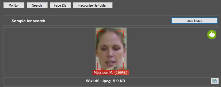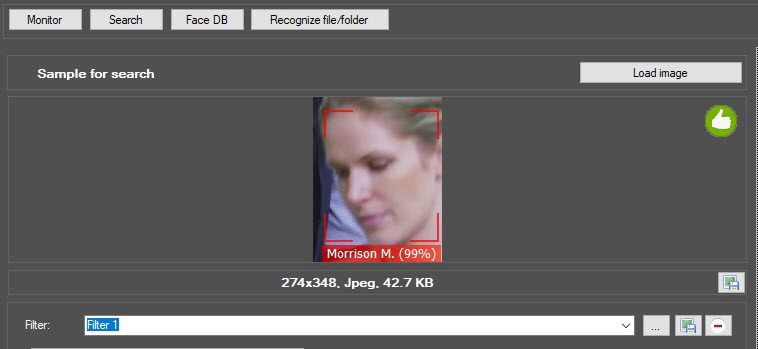 As a result the selected area is displayed in the Sample for search field on setting search conditions panel.