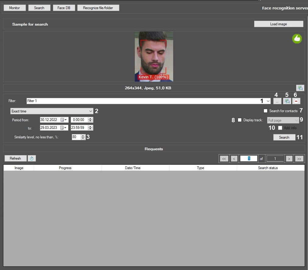 In the Similarity level, no less than, % field (3), set the minimal similarity level between the reference face image and the captured face.