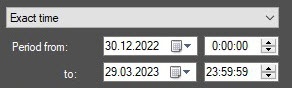 Exact time—in the Period from and to fields, specify the beginning and end of the search interval in the DD.MM.YY HH:MM:SS format.