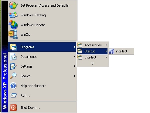 To configure the Intellect™ system launch from the Startup function, the Intellect™ system icon should be placed in the Startup group of the Start menu.