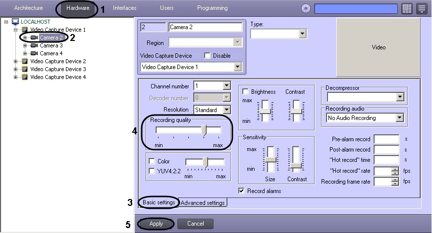 If it is necessary to reduce the size of video stream from the camera, move the Quality slider to the Min.Note.