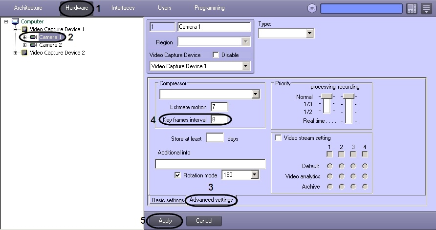 - Specify the required value of key frame rate in the Key frames interval field (4).