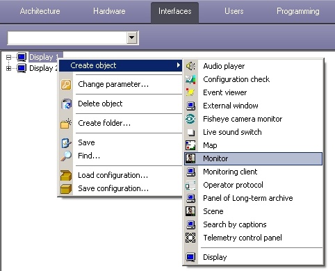 - Double-click the right mouse button upon the selected Display object and select Create object > Monitor in the contextual window.
