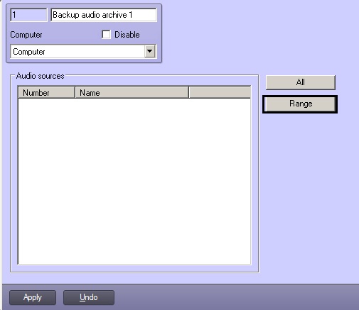 Configuration of the Backup audio archive is performed using the Backup audio archive system object. The Backup audio archive object is created automatically while creating the Backup archive object.