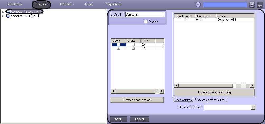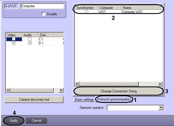 Synchronization of the Event Viewer databases is configured on the settings panel of the Computer object in the Protocol synchronization tab.