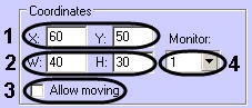 When several monitors are connected to a computer, select from the Monitor dropdown list the identifier of monitor in the operating system, for displaying on which the object coordinates are set (4).