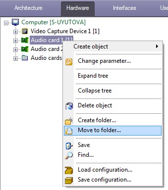 To move objects to the folder, select the object, which you need to move, display the context menu and select the Move to folder option.