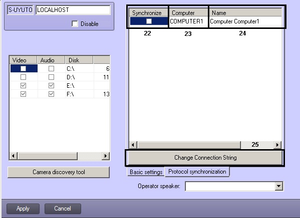 4 | Video | Is identified by the check mark | Set the disk for storing video archive from cameras and also audio archive during synchronous audio and video recording