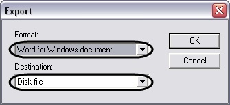 5. If Disk File is selected in the Destination list, the Choose Export File dialog box will appear. Select the folder and filename to save the report to.