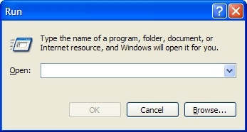 - Open the Run dialog box by clicking Start, then Run, or by pressing WIN+R keys on the keyboard.