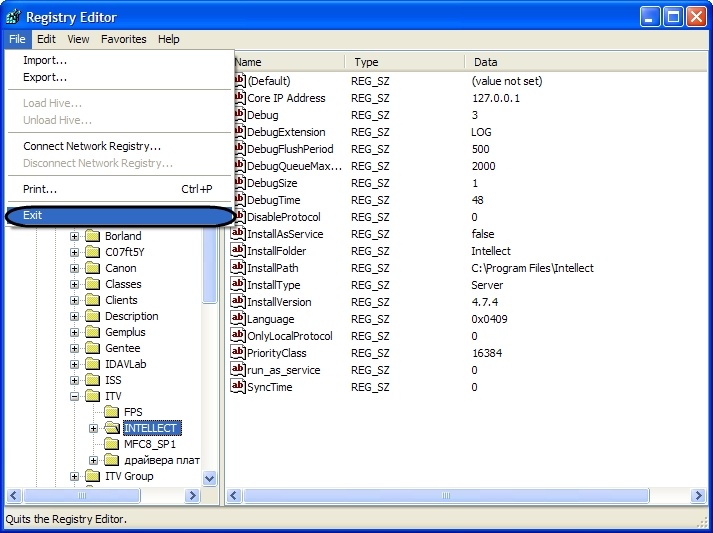 To close the registry editor, click the