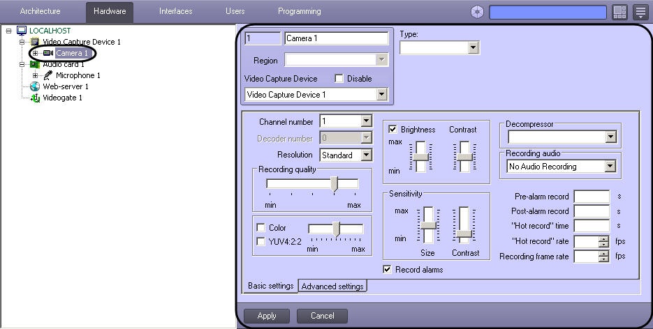 - The Hardware tab is designed for connection and configuration of hardware and program modules. Also, this tab is used for connection and configuration of customer-tailored components of the operator GUI, i.e. such objects as the Custom Dialog Box and Alarm Notification Window.
