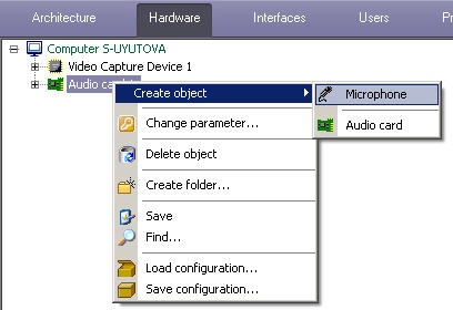 - Select Create object -> Microphone in the context menu of the Audio card object.