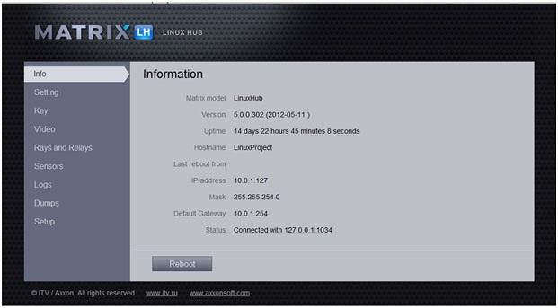 The Reboot button is located below used for LS (LH) reboot. The The Matrix is restarting now message is displayed during the reboot.