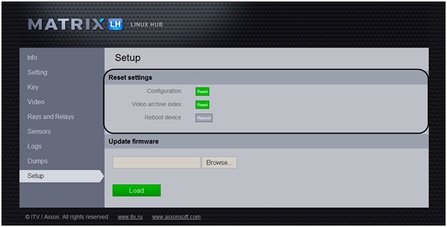 Online updating of the firmware is performed in the Setup tab (see Updating Linux Server (LinuxHub) firmware section).