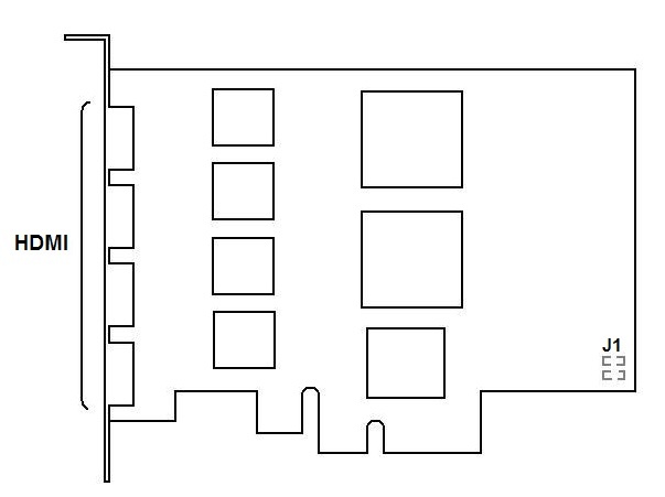 SC510N4 (FX HD4) video capture card has 4 external HDMI pins to connect video and audio devices. The Watchdog cable is connected to the J1 pin.