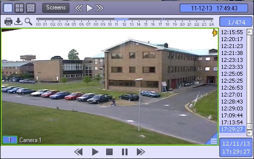 - Select Video Server in the context menu and the playback control panel, which contains the main video server archive recordings, will be displayed.