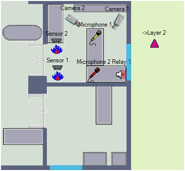 Security devices of the System (cameras, microphones, sensors, relays) are reflected on the Map as symbols (conventional characters, see figure).