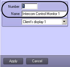 In the opened box enter the number and name of the Intercom Control Monitor object and then click Apply.