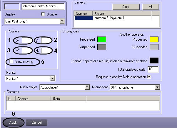 4. Set the Allow moving checkbox to allow moving of the Intercom Control Monitor interface window.