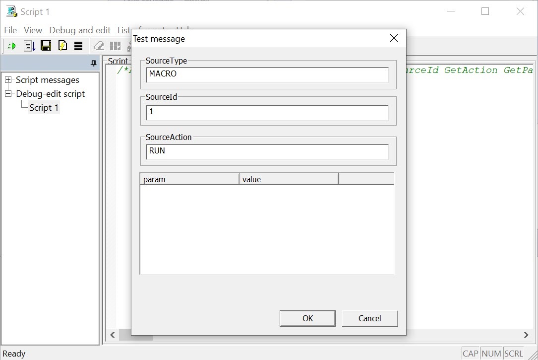 After debugging the script using the Editor-Debugger utility, run it with a real system event. Check the result of the script execution. If the result is incorrect, make the necessary changes and run the script again.