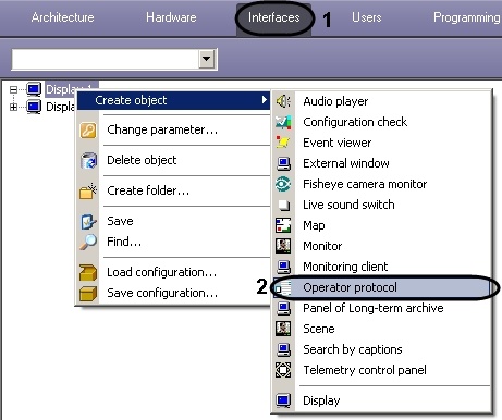 - In the context menu of the Display object on which the created object is to be based, select the Operator protocol item in the Create object submenu (2).