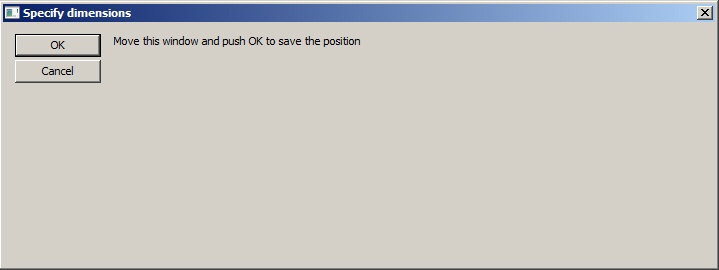 You may also set the interface window position and size with a template box. To do this, click X (3). The Specify dimensions box appears. Drag and resize it on the screen where the interface window should be, then click OK. The X, Y, W, H fields are automatically filled with values according to the Specify dimensions box position and size.