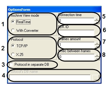 - The Frames Amount field sets the total number of frames requested from the videoserver when working via the X.25 protocol.