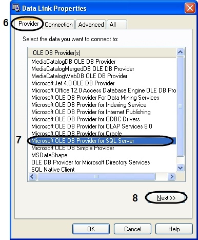 - Select Microsoft OLE DB Provider for SQL Server in the OLE DB Provider(s) list.