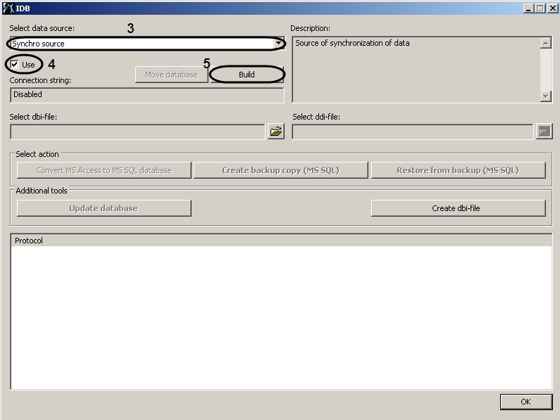 - In the 1.Select or enter a server name select from the list or input manually the address of MS SQL server containing the database that is to be used as a source to sync with the current database.